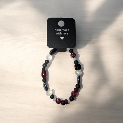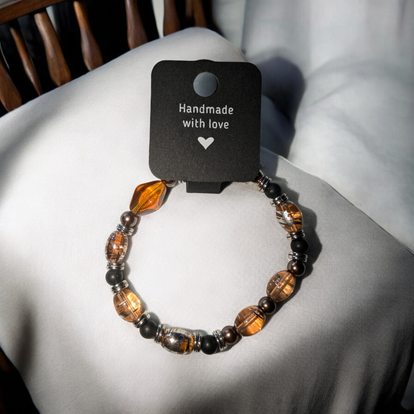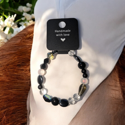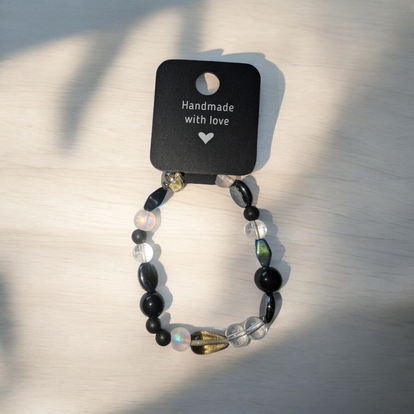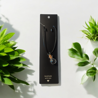 Glass sphere leather cord necklace filled with natural black obsidian.