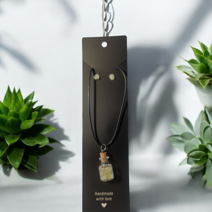 Glass cylinder leather cord necklace filled with natural tiger eye.