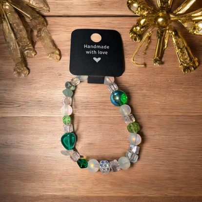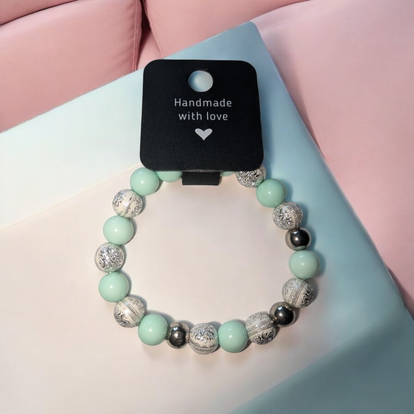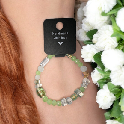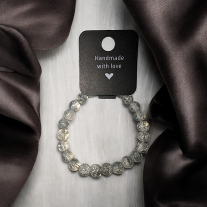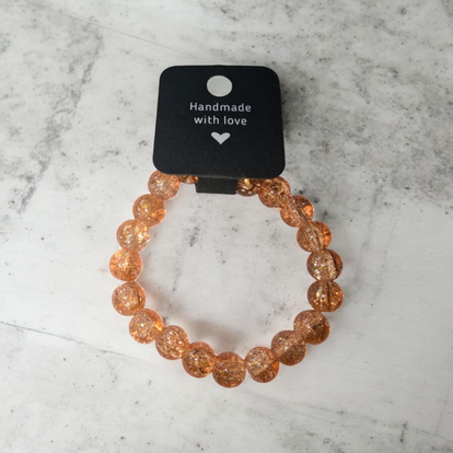 Glass sphere leather cord necklace filled with natural rose quartz.